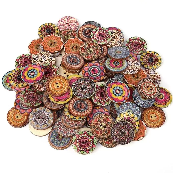 Ekta Enterprise Natural Coffee Brown Dark Wooden Button 20 Pcs 25 mm