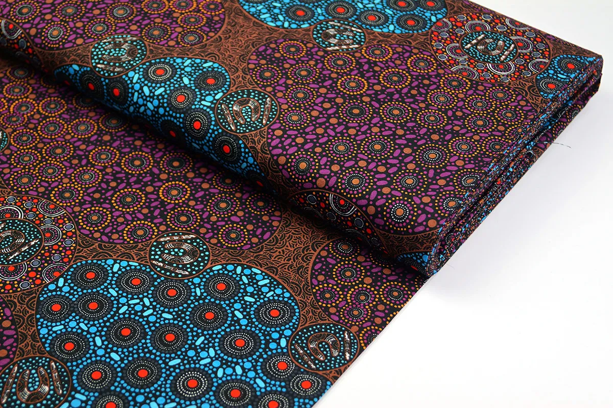Feather-soft, high-quality cotton fabric with a lively Aboriginal design. Each pattern is designed by an Aboriginal artist and tells a story from their culture.